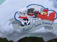Have you ever wondered how to say "thanks" to that special person in your life or maybe an employee who "went over the top" for you? Recently we had the opportunity to sponsor the "People's choice" award at the Stillwater Area Chamber of Commerce BBQ on the river event. The participating food vendors worked hard to earn the privileged honor of being picked by those who came to the event. The winning vendor (Dixie Blue BarBQue) was presented with an apron which included the companies logo and an award design. This could be done on shirts or any material that "a needle will go through"! Just an idea for that next "someone special".